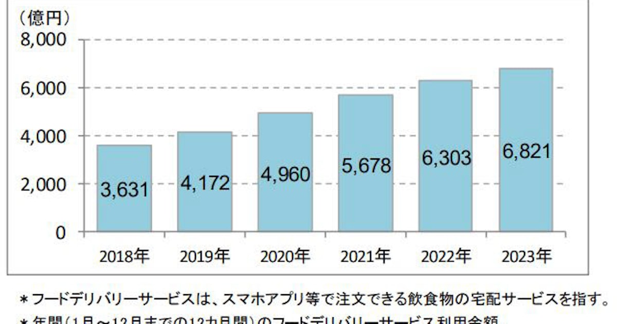フードデリバリーサービス(出前を含む宅配市場全体)の国内市場規模の調査結果